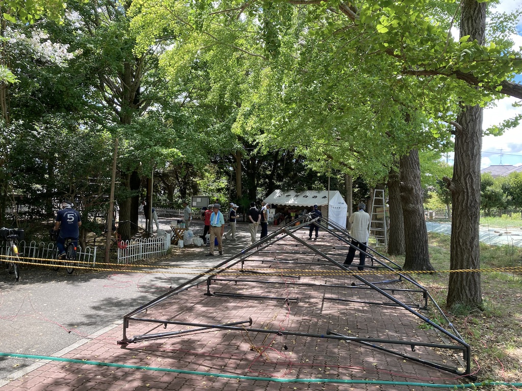 08月12日(土)07:00から、みさとまつり会場設営を行いました。 *諸材料を会場へ運搬 *倉庫テント設置 *テント骨組み *舞台組み立げ *寄付掲示板設置 *立入禁止ロープ設置 *水道配管 *提灯電線配線(一部の線をリニューアル) *その他 ご協力したくださった皆様、心より御礼申し上げます。 |